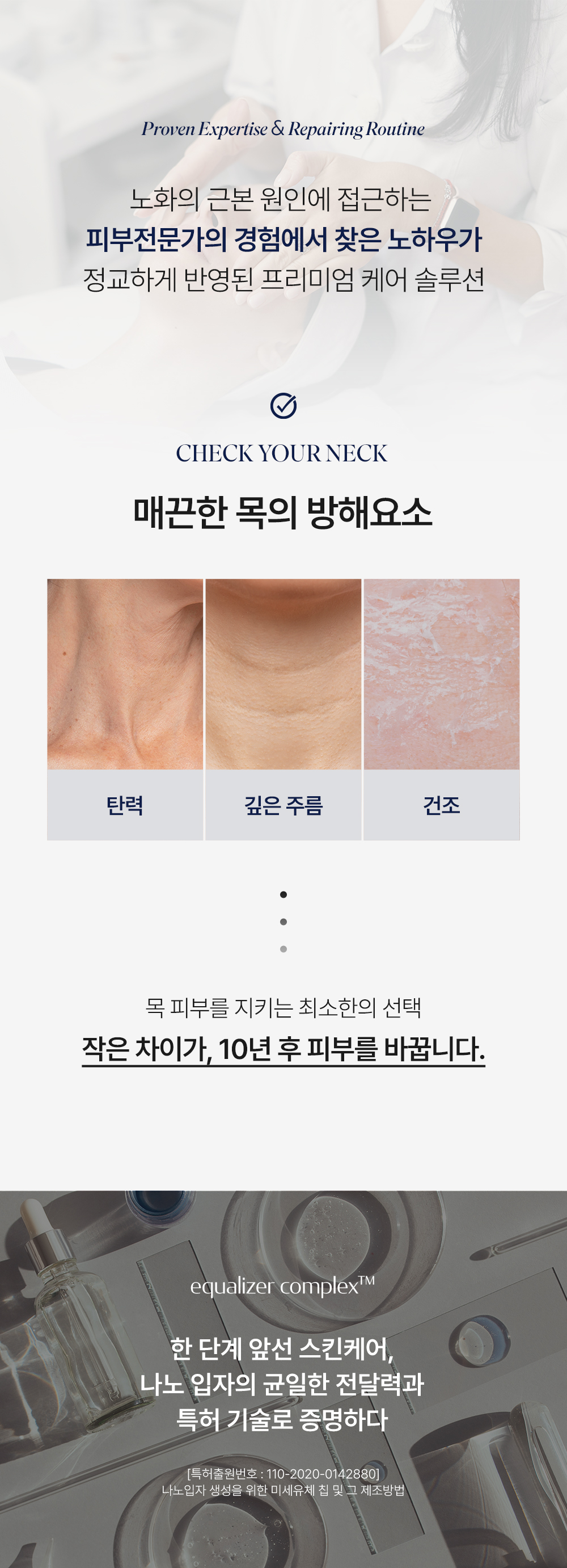 페이스 라인을 따라 적당량 목에 도포하여 흡수시켜 주세요.