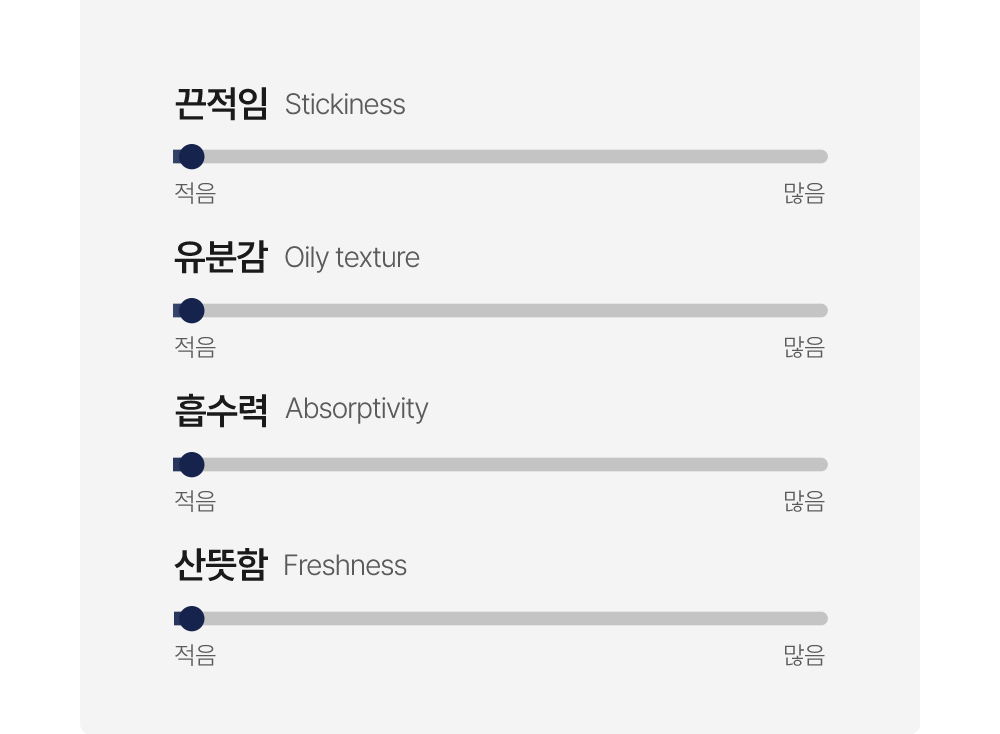 정제수, 글리세린, 카프릴릭/카프릭트라이글리세라이드, 해바라기씨오일, 나이아신아마이드, 세테아릴알코올, 1,2-헥산다이올, 미네랄워터, 세테아릴올리베이트, 부틸렌글라이콜, 메틸트라이메티콘, 오일팜커넬오일, 솔비탄올리베이트, 오일팜오일, 에틸헥실글리세린, 알란토인, 잔탄검, 알지닌, 스쿠알란, 암모늄아크릴로일다이메틸타우레이트/브이피코폴리머, 카보머, 아데노신, 펜틸렌글라이콜, 글루타티온, 소듐하이알루로네이트, 글라이신, 글루타믹애씨드, 글루타민, 라이신, 류신, 메티오닌, 발린, 세린, 소듐아스코빌포스페이트, 시스틴, 아스파라진, 아스파틱애씨드, 아이소류신, 알라닌, 타이로신, 트레오닌, 트립토판, 페닐알라닌, 프롤린, 히스티딘, 소듐하이알루로네이트크로스폴리머, 소듐파이테이트, 카퍼트라이펩타이드-1, 하이드롤라이즈드하이알루로닉애씨드, 토코페롤, 아세틸헥사펩타이드-8, 팔미토일펜타펩타이드-4, 하이알루로닉애씨드, 소듐디엔에이, 팔미토일테트라펩타이드-7, 팔미토일트라이펩타이드-1, 구아닌, 메나다이온, 사이토신, 아데닌, 우라실, 하이드롤라이즈드소듐하이알루로네이트, 리보플라빈, 바이오틴, 사이아노코발아민, 아스코빅애씨드, 티아민에이치씨엘, 폴릭애씨드, 피리독신