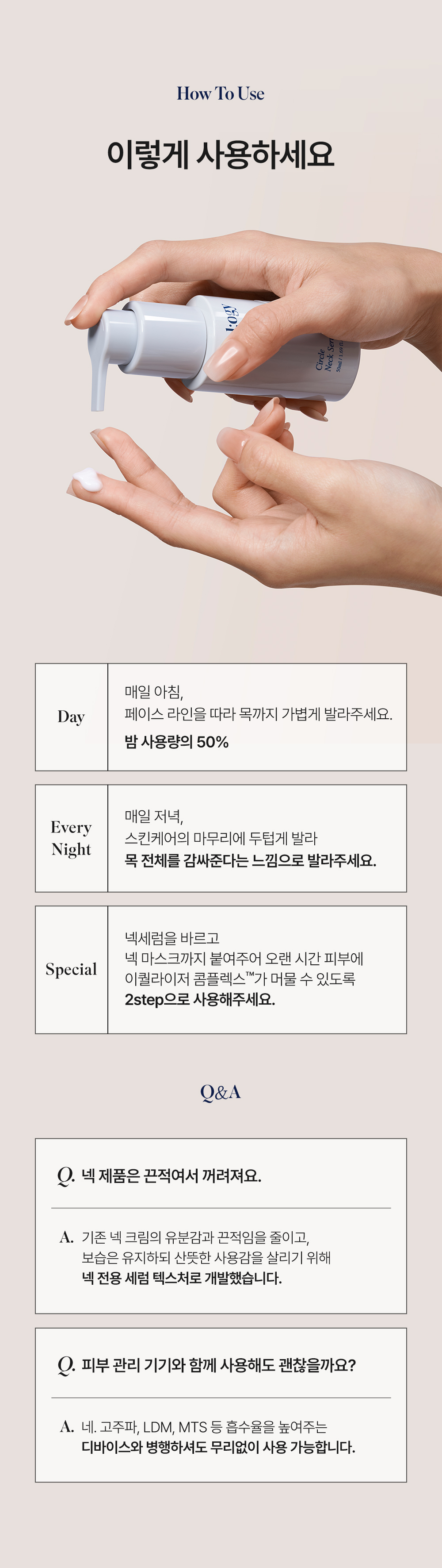 페이스 라인을 따라 적당량 목에 도포하여 흡수시켜 주세요.