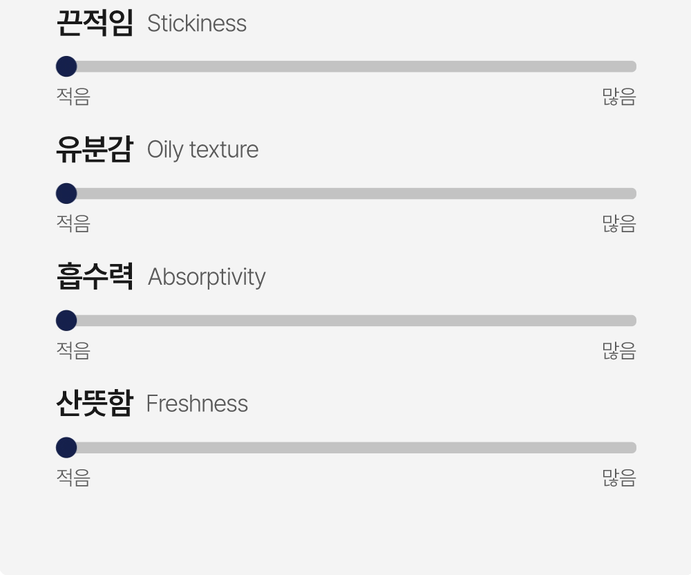 정제수, 글리세린, 카프릴릭/카프릭트라이글리세라이드, 해바라기씨오일, 나이아신아마이드, 세테아릴알코올, 1,2-헥산다이올, 미네랄워터, 세테아릴올리베이트, 부틸렌글라이콜, 메틸트라이메티콘, 오일팜커넬오일, 솔비탄올리베이트, 오일팜오일, 에틸헥실글리세린, 알란토인, 잔탄검, 알지닌, 스쿠알란, 암모늄아크릴로일다이메틸타우레이트/브이피코폴리머, 카보머, 아데노신, 펜틸렌글라이콜, 글루타티온, 소듐하이알루로네이트, 글라이신, 글루타믹애씨드, 글루타민, 라이신, 류신, 메티오닌, 발린, 세린, 소듐아스코빌포스페이트, 시스틴, 아스파라진, 아스파틱애씨드, 아이소류신, 알라닌, 타이로신, 트레오닌, 트립토판, 페닐알라닌, 프롤린, 히스티딘, 소듐하이알루로네이트크로스폴리머, 소듐파이테이트, 카퍼트라이펩타이드-1, 하이드롤라이즈드하이알루로닉애씨드, 토코페롤, 아세틸헥사펩타이드-8, 팔미토일펜타펩타이드-4, 하이알루로닉애씨드, 소듐디엔에이, 팔미토일테트라펩타이드-7, 팔미토일트라이펩타이드-1, 구아닌, 메나다이온, 사이토신, 아데닌, 우라실, 하이드롤라이즈드소듐하이알루로네이트, 리보플라빈, 바이오틴, 사이아노코발아민, 아스코빅애씨드, 티아민에이치씨엘, 폴릭애씨드, 피리독신