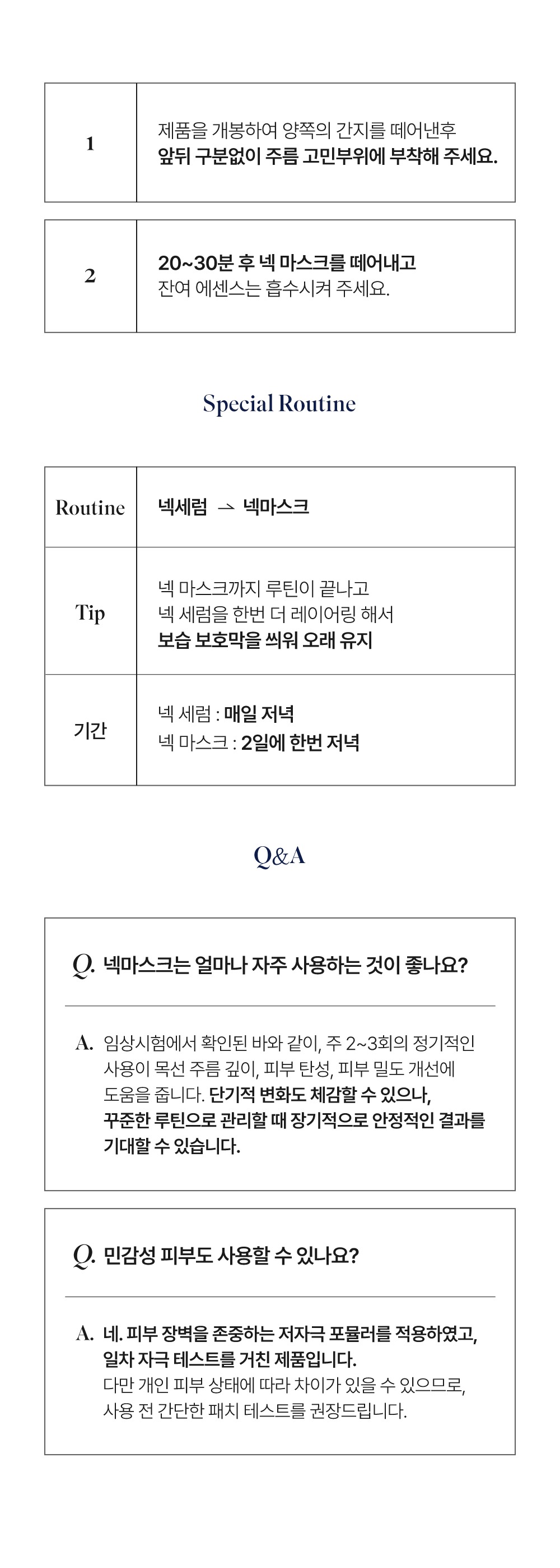 페이스 라인을 따라 적당량 목에 도포하여 흡수시켜 주세요.